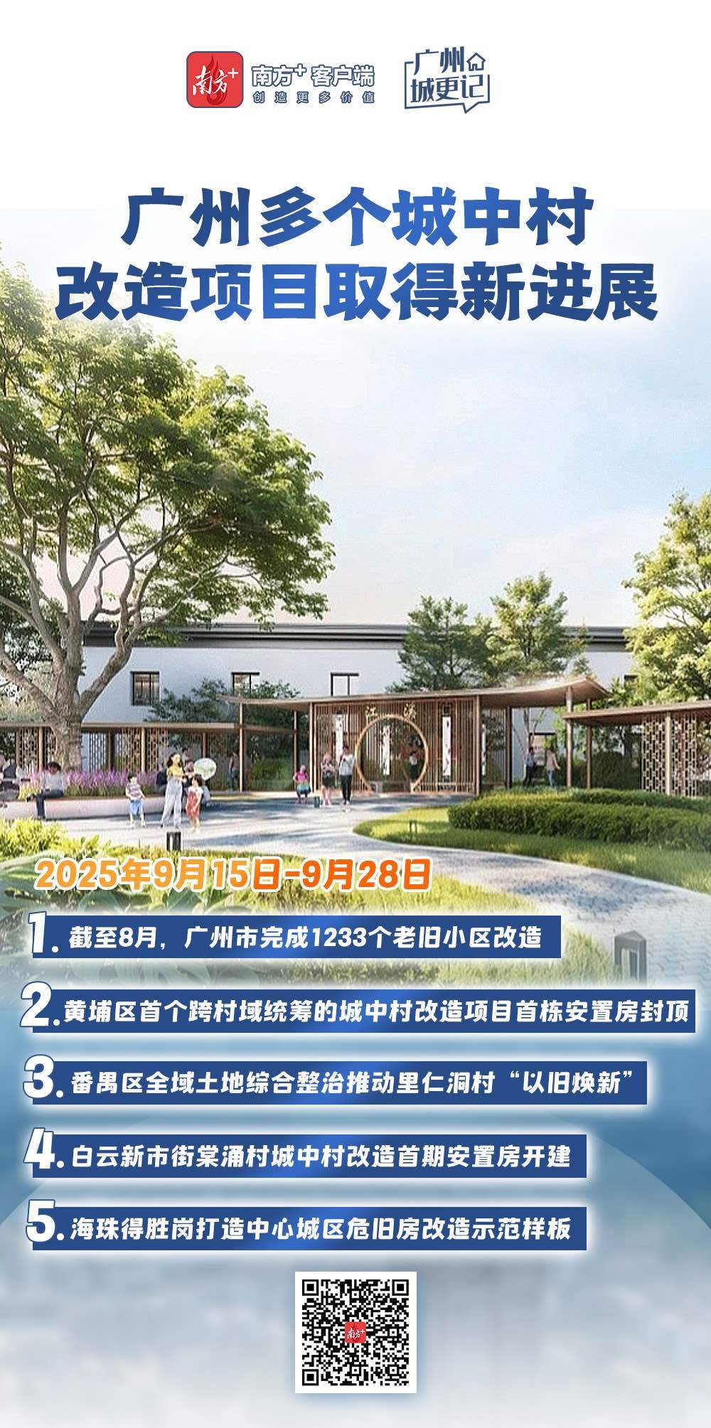 3.截至8月,广州市完成1233个老旧小区改造,惠及300万名居民